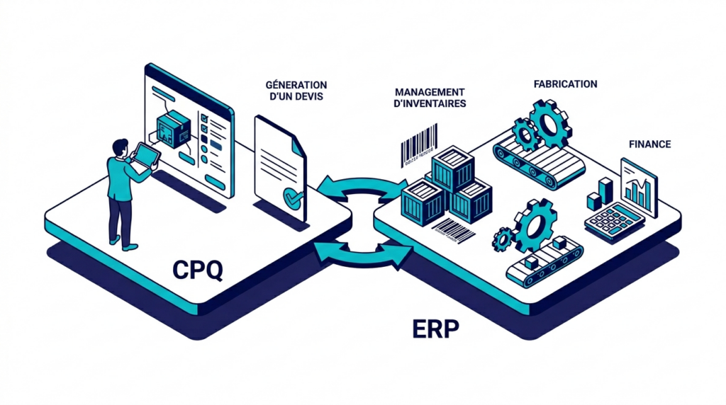 La vraie puissance réside dans l’interopérabilité. Un CPQ performant ne remplace pas l’ERP, il le nourrit. Le flux idéal se déroule ainsi :