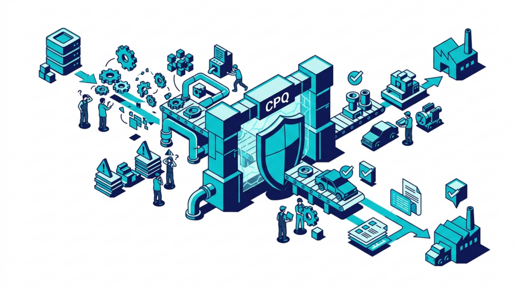 Une fois l’erreur de configuration éliminée dans le CPQ, il reste un risque : la saisie de la commande dans l’ERP. La ressaisie manuelle est le terreau fertile des inversions de codes ou des oublis d’options.